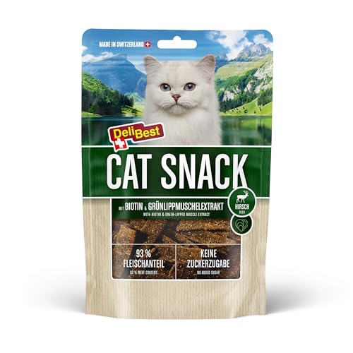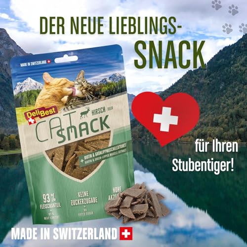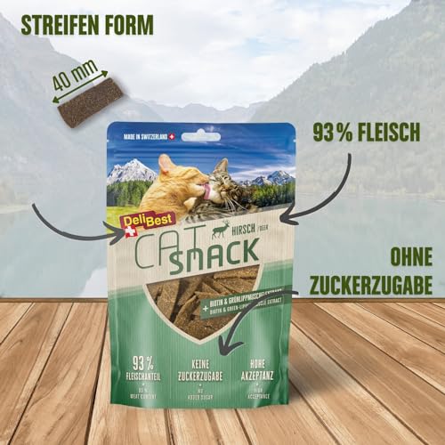DeliBest Cat Snack aus 100% Schweizer Hirschfleisch I Katzen Leckerlies getreidefrei I halbfeuchte Leckerlies leicht verdaulich I Katzen Snack für Fellglanz I Allergiker geeignet I 45g