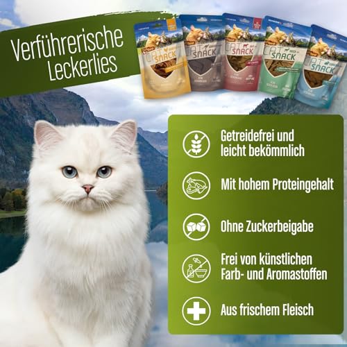 GETREIDEFREI UND LEICHT BEKÖMMLICH Der Katzensnack verzichtet komplett auf Getreide und ist deshalb ein sehr bekömmliches und leicht verdauliches Katzenfutter zur Belohnung oder einfach zwischendurch