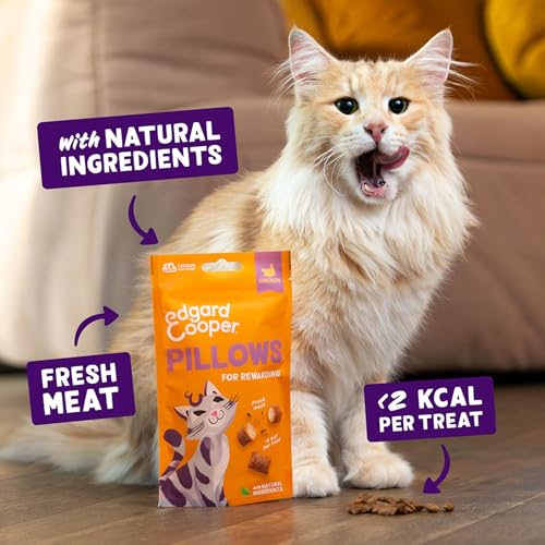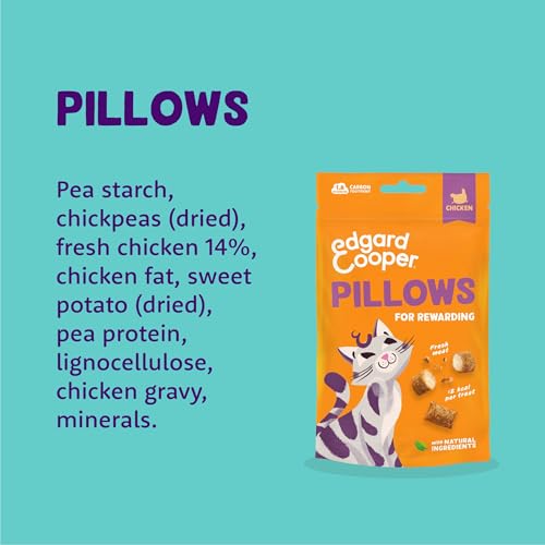 Edgard Cooper natürliche Katzensnacks, Pillows mit Huhn (1 x 60 g Beutel), vollgepackt mit frischem Fleisch, getreidefrei, weniger als 2 kcal pro Snack, natürliche Zutaten & ohne Zuckerzusatz.