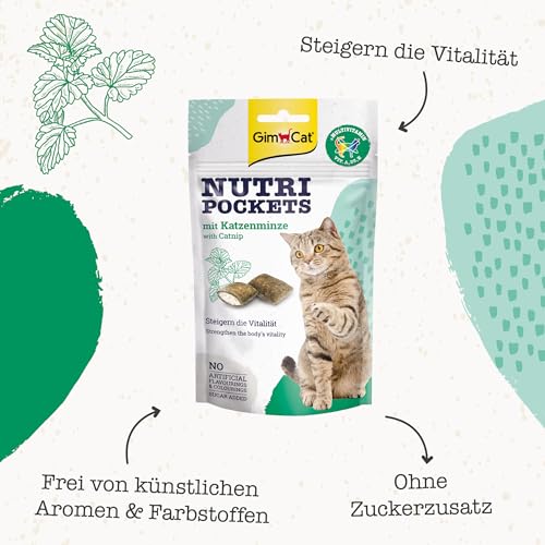 GimCat Nutri Pockets Katzenminze – Knuspriger Katzensnack mit cremiger Füllung und funktionalen Inhaltsstoffen – 1 Beutel (1 x 60 g)