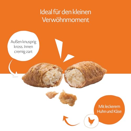 GENAU DER RICHTIGE SNACK: Die köstlichen Katzenleckerlis sind außen knusprig und innen mit einer leckeren Creme gefüllt, was sie einfach unwiderstehlich macht