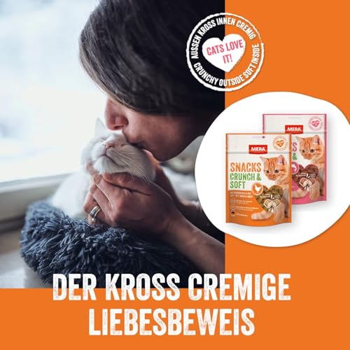 MERA Crunch & Soft mit Huhn & Käse, 200g köstliche Katzen Leckerlies, nahrhafter Katzensnack voller Vitamine und Mineralien, Knuspersnack mit cremiger Füllung