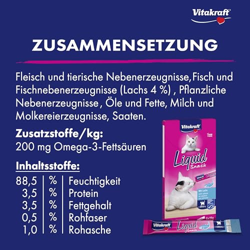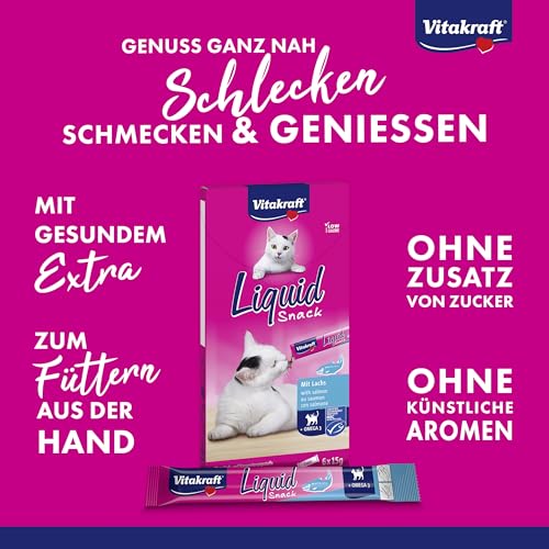 Vitakraft Liquid Snack, Katzen Leckerli, Katzensnack cremig, mit Huhn und Taurin, in einzelnen Sachets, unterstützt die Augen und das Herz (6x 15g)