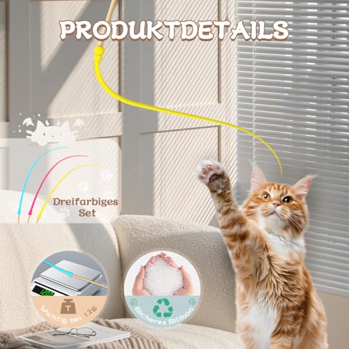 ULTRA-LEICHTES SILIKONMATERIAL: Dieser Katzenangel ist aus hochwertigem Silikonmaterial hergestellt. Der Katzenangel hat insgesamt eine Länge von 70 Zentimetern und bietet Ihrer Katze eine sichere Distanz, sodass sie gleichzeitig Spaß und Interaktion genießen kann. Ein beliebtes, sicheres und stabiles interaktives Katzenspielzeug, das speziell für die Gesundheit Ihres Haustieres entworfen wurde.