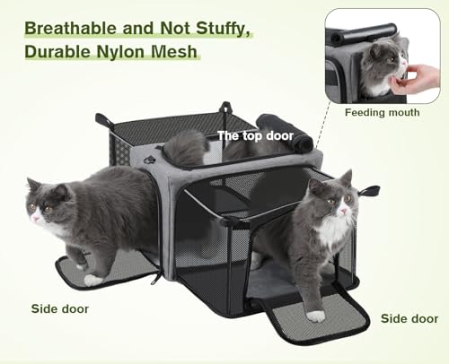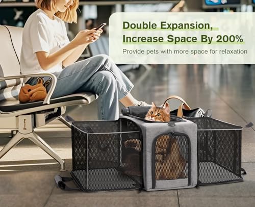 Katzentransportbox Erweiterbar Katzenbox für 2 KatzenTransportbox Katze Groß, Hund Welpen, Faltbar Hundetransportbox Zusammenklappbare Transporttasche Katze Transport, Hellgrau