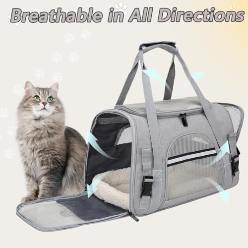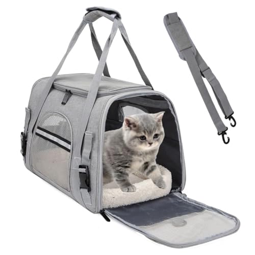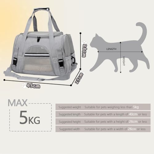 Transporttasche Katze,5 kg Faltbare Transportbox Katze mit Schulterriemen,Katzentransportbox Hunde Katzen Transportboxen,katzentransporttasche,Katzen Tragetasche für Katzen, kleine Hunde Grau,M