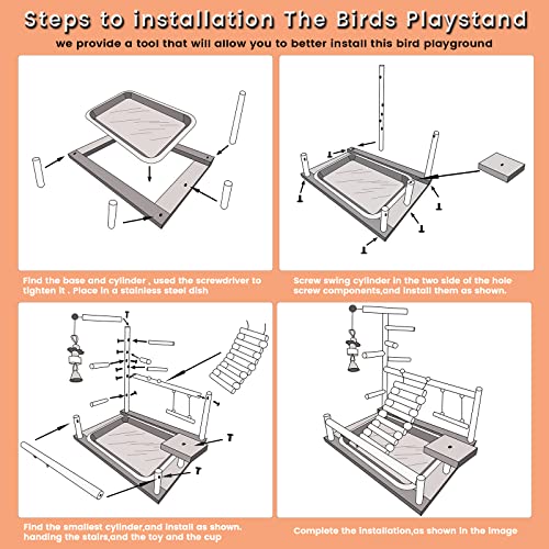 【HALTEN SIE KÖRPER UND GEIST GESUND】- Der Wellensittich-Spielplatz verfügt über einen Futternapf, eine Schaukel, eine Kletterleiter und ein bewegliches Tablett. Der Vogel kaut, klettert und spielt, kann also seinen Körper trainieren und Vögel gesund halten, Papageien bei der Unterhaltung helfen und ihre Angst und Depression und verbessern ihre psychische Gesundheit.