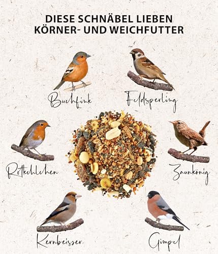 Dehner Natura Premium Wildvogelfutter, Körnerfutter / Weichfutter, Ganzjahresfutter proteinreich / energiereich, hochwertiges Vogelfutter für Wildvögel, 2.5 kg