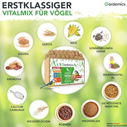 ✔️ ERSTKLASSIGER VITALMIX – Die hochwertige Futtervielfalt aus energiereichen Inhaltsstoffen macht die Meisenknödel bei Wildvögeln besonders beliebt & lockt zahlreiche Vogelarten in deinen Garten.