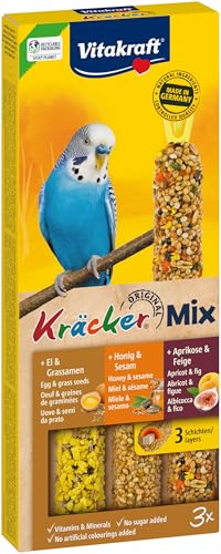 Vitakraft Kräcker Mix, Vogelsnack, Knabberstangen, mit Ei und Grassamen, mit Aprikose und Feige, mit Honig und Sesam, zur Schnabelpflege, ohne Zusatz von Zucker (10x 80g)