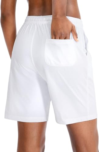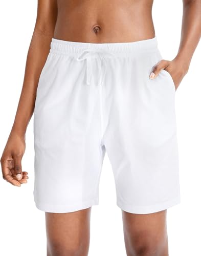 Bermuda Shorts Damen Sommer Kurze Hose Sporthose Knielang Baumwoll Sport Shorts High Waist Laufshorts Kurze Jogginghose Lässige Sweatshorts mit Taschen
