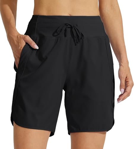 Damen Shorts Sporthose Kurz High Waist Laufhose Sommer Laufshorts Schnelltrocknend Wanderhose Kurze Hose Sport Fitness Running mit Taschen 7″