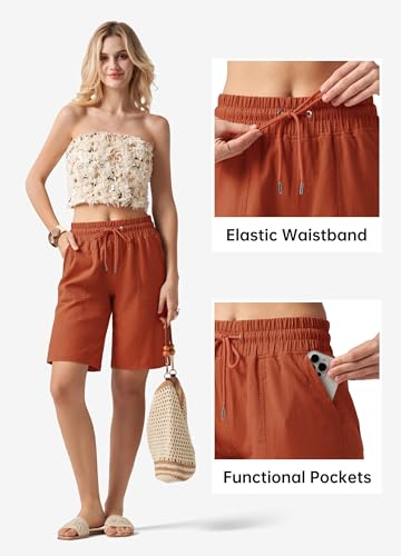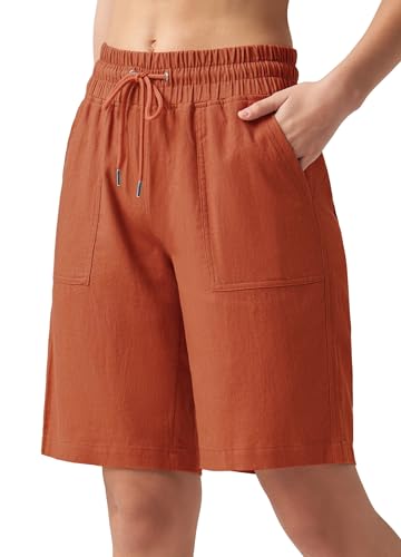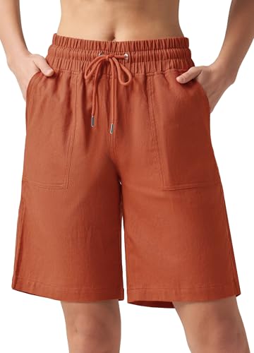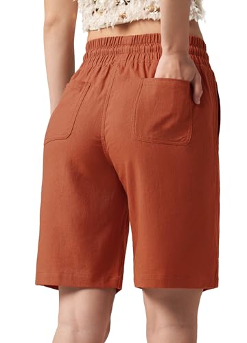 Shorts Damen Leinen Baumwolle Shorts Freizeit Bermuda Kurze Hose knielange High Waist Bequeme Sommershorts mit Taschen 10“