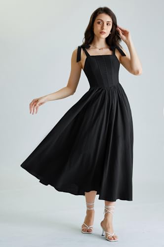 SCARLET DARKNESS Damen Mittelalter Kleid Lang Ärmellos mit Schnürung Gesmokt A-Linie Renaissance Korsett Kleid