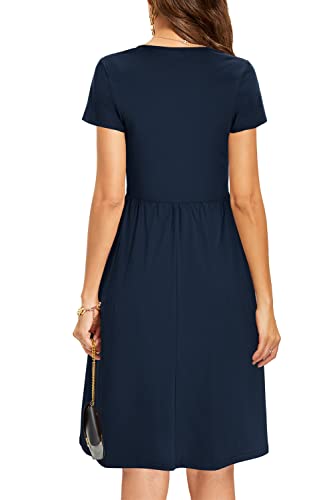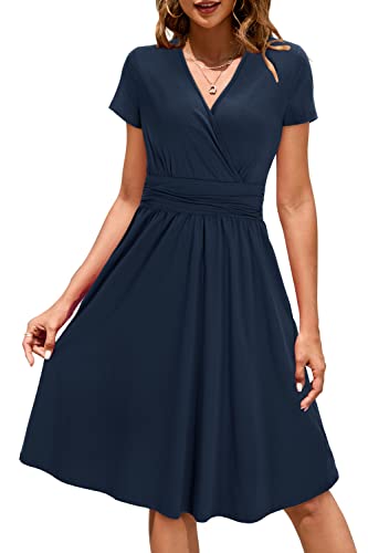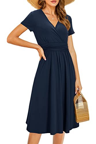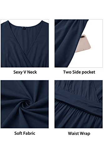 STYLEWORD Damen Sommerkleid Kurzarm V-Ausschnitt Kleider Blumenmuster Kleid Wickelkleid Mit Taschen