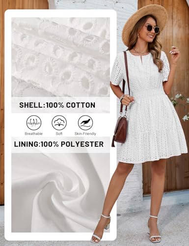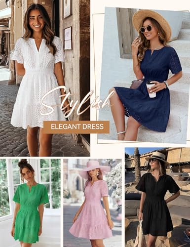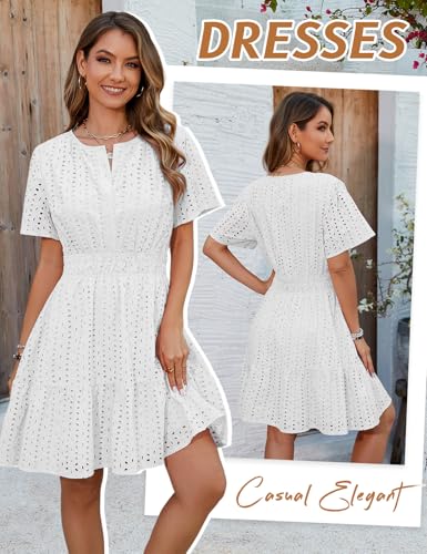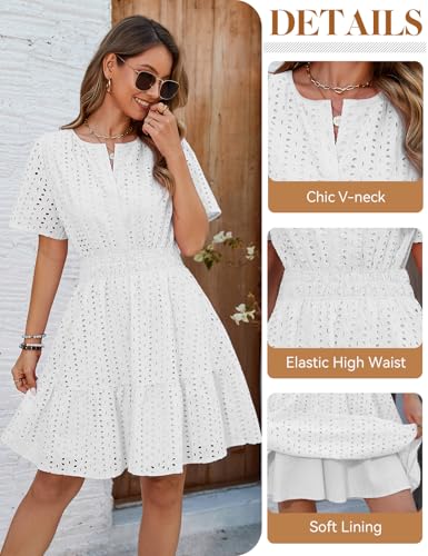 Yuson Girl Kleid Damen Sommerkleid V-Ausschnitt Kurzärmeliges Kleider Sommer Baumwolle Ausgehöhltes Minikleid Kurz Strandkleid Freizeitkleid High Waist A-Linien Sommerkleid