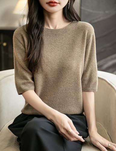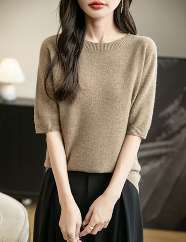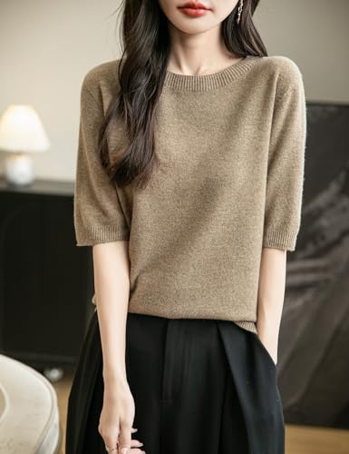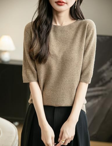 Damen 100% Merinowolle Kurzarm Pullover 2025 Frühjahr Sommer Winter Rundhals Weich Nahtloser Strickpullover Sweatshirt