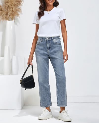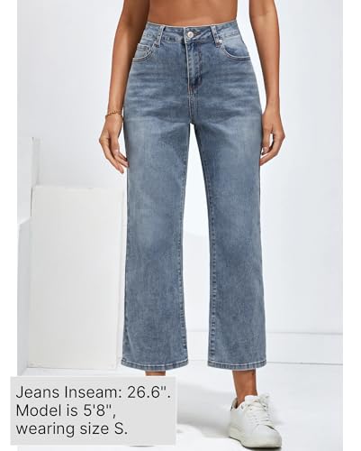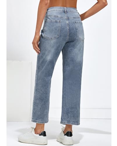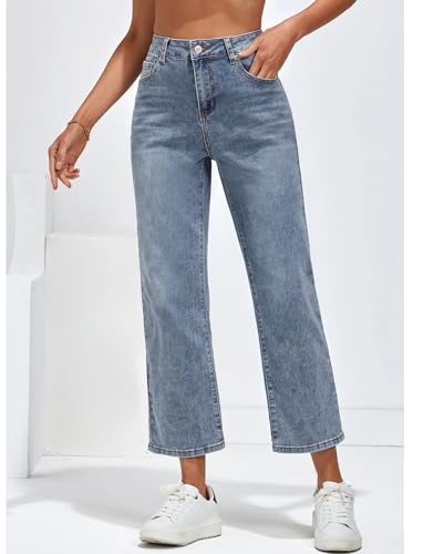 Vetinee Damen High Waist Jeans Weites Bein Stretch Baggy Straight Leg Jeanshose