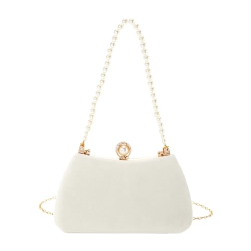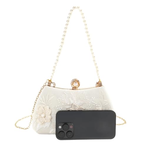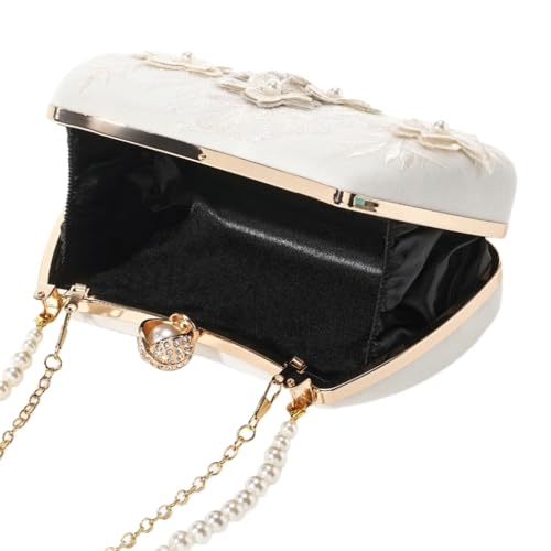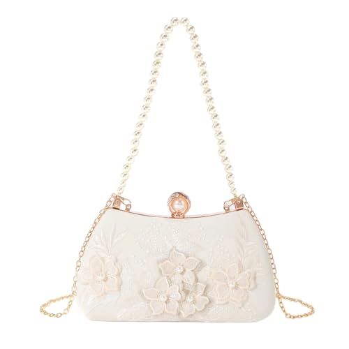 Abendtasche für Damen, mit Perlen und Blumen, Taschen und Clutches für Damen, Abendtasche, Handtasche, Damen, Umhängetasche, abnehmbare Kette, für Hochzeit, Party, weiß, 21x7x12,5cm