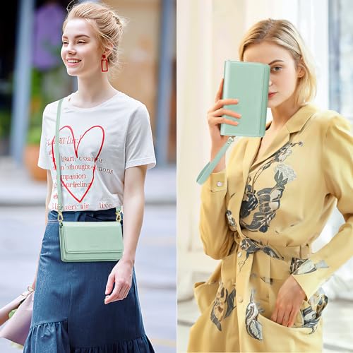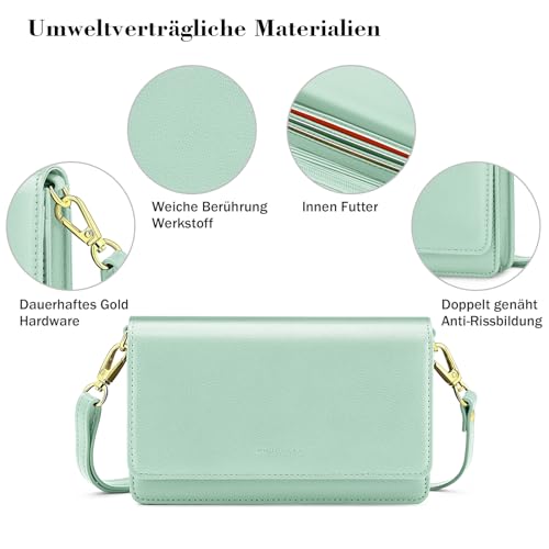 nuoku Crossbody Bag Damen Leder, Handytasche Zum Umhängen Damen, Kleine Umhängetasche Damen mit Verstellbarem, Abnehmbarem Schultergurt und Funktionelle Fächer (Grün)