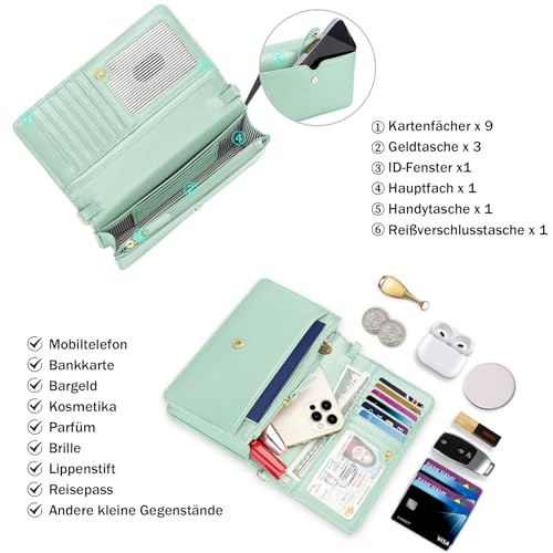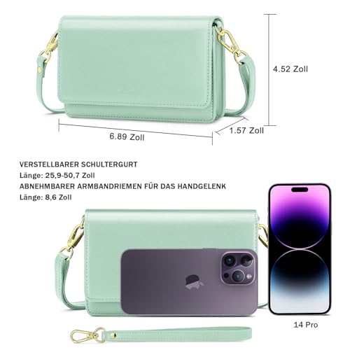 MEHRZWECK: Der Handytasche Zum Umhängen Damen wird mit einem 25,9–50,7 Zoll langen abnehmbaren, verstellbaren langen Riemen und einem 7 Zoll abnehmbaren Handschlaufe geliefert, wodurch er auf 5 Arten getragen werden kann: Umhängetaschen für Damen, Armband-Geldbörse, Clutch-Geldbörse, kleine Schultertasche, kleine Handtasche zum Mitnehmen. in Ihren großen Handtaschen als Geldbörse. Größe: 6,89″ x 1,57″ x 4,52″/ (L x B x H). Leichtgewicht: 0,55 lb/250 g.