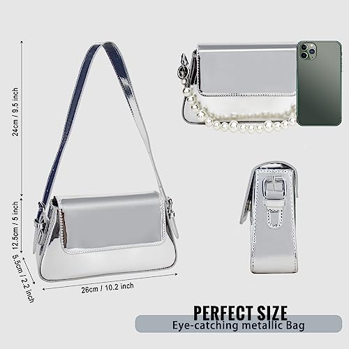 Silber Abendtasche Y2k Geldbörse – Hobo Clutch Glitzer Damen, Silver Metallisch Clutches Handtasche Brieftaschen Umhängetasche für Party Freizeit Date