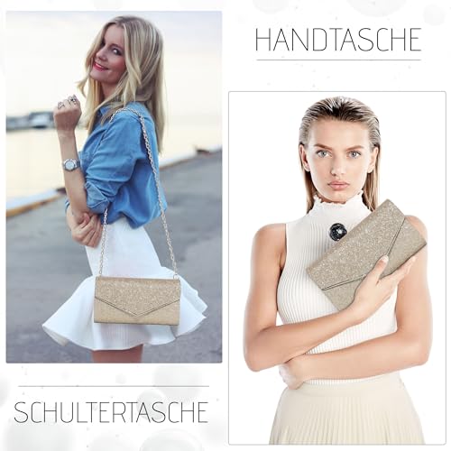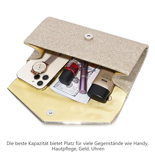 Auffälliges Design: Der funkelnde handtasche klein ist in verschiedenen Farben erhältlich. Hochwertig glänzender Body mit abnehmbarem goldfarbenem Kettenriemen und magnetischem Druckknopfverschluss auf der Vorderseite, die Ihrem Outfit zusätzliche Punkte verleihen.