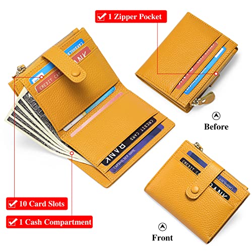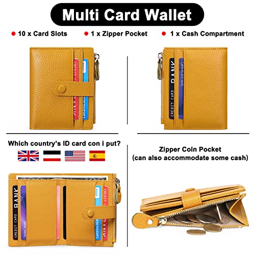 【KAPAZITÄT & PRAKTISCHE FUNKTION】Die schlanke Bifold Damen Geldbörse hat 10 Kartenfächer, genug, um die meisten Karten zu halten, 1 extra langes Bargeldfach und 1 seitliches Reißverschluss-Münzfach, Schnalle kann Ihre Karte vor dem Fallen schützen, nicht zu sperrig noch zu klein. Die beste Wahl, um sperrig aussehende Geldbörsen zu vermeiden