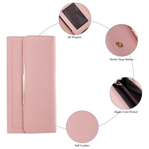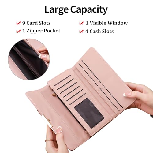 【Großes Platzangebot】 Diese Damenbrieftasche hat 9 Kartenfächer, 2 Bargeldfächer, 2 Belegfächer und 1 Reißverschluss-Münzfach, was groß genug ist, um Karten, Münzen, Scheckhefte, Scheine, Ausweise und Belege zu halten.