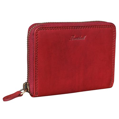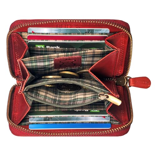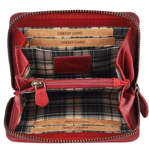 Geldbörse Damen Klein Echt Leder | Geldbeutel mit RFID Schutz | Flaches Slim Portemonnaie mit Reißverschluss & 6 Kartenfächer, Farbe:Rot