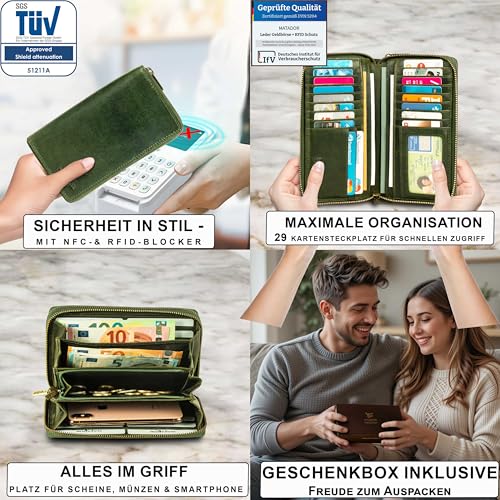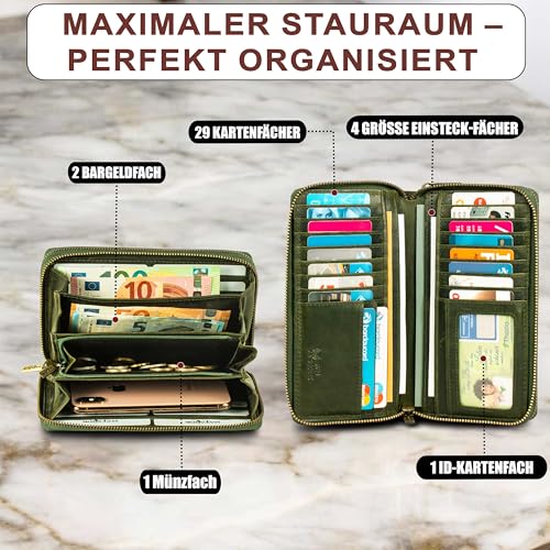 Portemonnaie Damen Leder Madrid mit edler Geschenk Box, Eleganter Geldbeutel mit RFID Blocker, Luxus Frauen Portmonee Viele Kartenfächer
