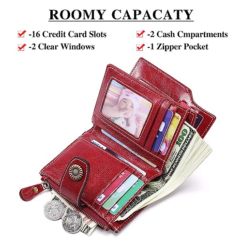 SENDEFN Portemonnaie Damen Echtleder, Bifold Compact RFID-Blockierung Geldbeutel Damen, Geldbörse Damen mit 16 Kartenfächern und 1 Reißverschlussfach