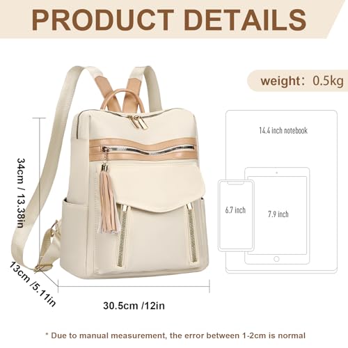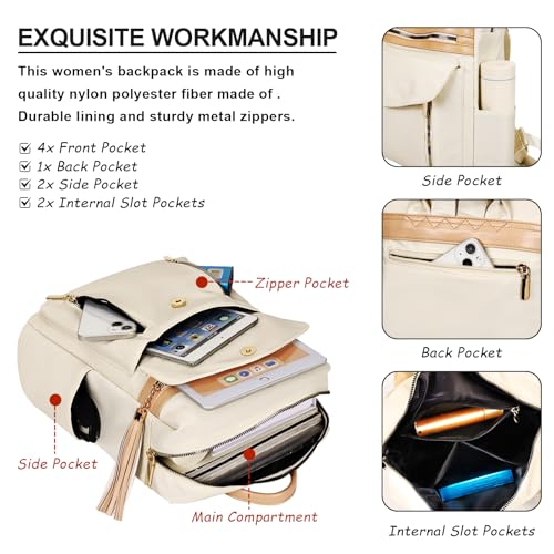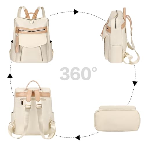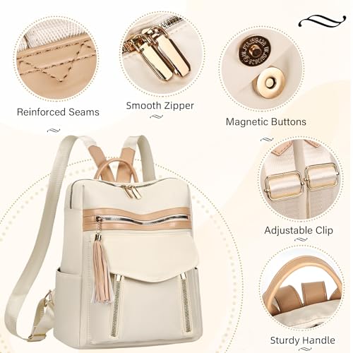 Leathario Rucksack Damen,Cityrucksack Modern,Elegenter Rucksack Wasserdicht,Rucksacktasche 2in1,Tagesrucksack Frauen,Women’s Fashion Backpacks Taschenrucksack zur Arbeit Schule Reise,Beige
