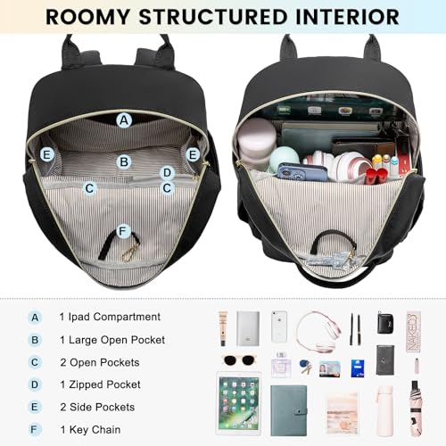 📚Mehrere Fächer: Dieser Mini Rucksack verfügt über mehrere praktische Fächer, damit Sie Ihre Sachen gut organisieren können. Im Hauptfach befindet sich ein gepolstertes iPad-Fach, das ein 12.9″ iPad or 13.3″ Laptop aufnehmen und bei einem Sturz abfedern kann, sowie Platz für Kosmetika, Brieftasche, Kleidung, Regenschirm, Wasserflasche und andere Gegenstände für alle Ihre Reisebedürfnisse. In den Rucksack der Größe L passen A4-Dokumente.