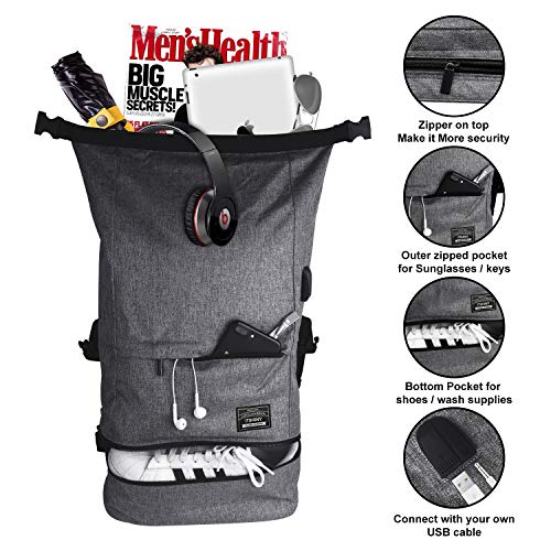 ✔ Ansprechendes Design:Wasserdichter Design Reiserucksack, mit Fächer zum Trennen von nassen Sachen, mit Reißverschluss, einem Schuhfach, das Schuhe von anderen Produkten, trennt, geeignet für Schuhe, Toilettenartikel, Kleidung; Falten und Schnallenverschluss, ermöglichen eine sichere Aufbewahrung, Gesäßtasche mit Diebstahlsicherung für die Brieftasche oder Telefon, einfach zu verstauen. Die Laptop-Tasche ist abschließbar und erhöht somit die Sicherheit. Die U-förmigen Polster de Brustgur.