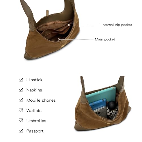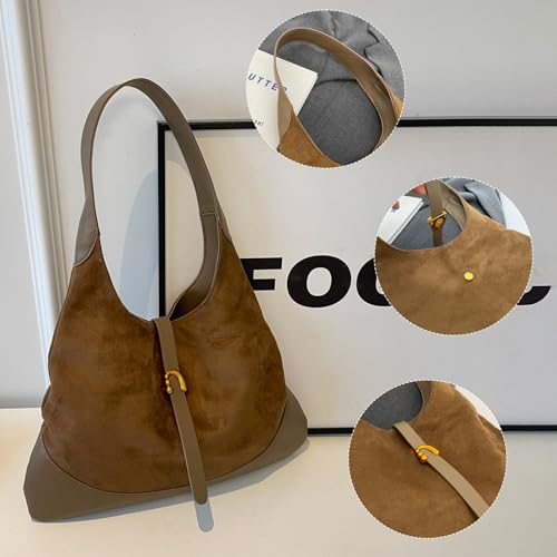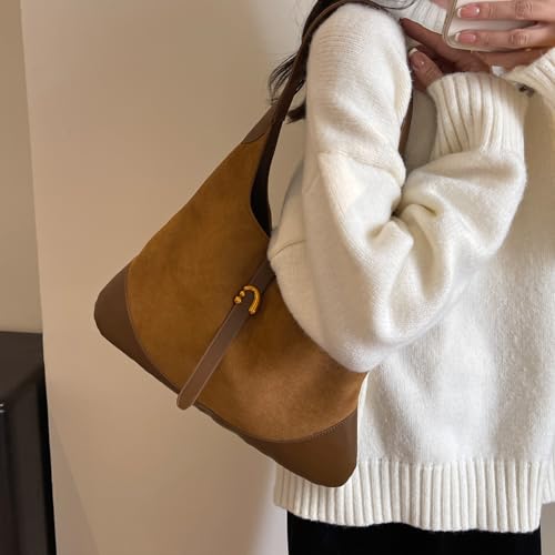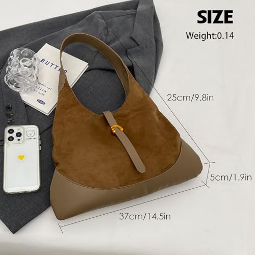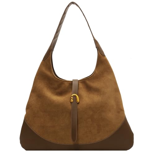 Handtasche Damen Wildleder Schultertasche Groß Hobo Tote Bag Tragbare Shopper Tasche Retro Damen-Henkeltaschen Casual Shoulder Bag Tasche Damen für Alltag, Reisen, Arbeit Rotbraun
