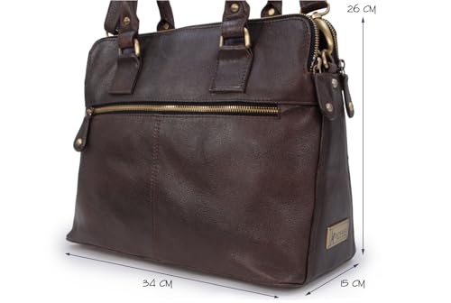Leder ist eines dieser fantastischen Materialien, die mit ein wenig Alter besser aussehen können. Sicher, brandneue Lederprodukte sehen schön aus, aber manchmal ist der alte Look oder der abgenutzte Ledereffekt einfach cooler. Wenn Sie das Aussehen von altem, bequem getragenem Leder begehren, müssen Sie nicht die Jahre warten, bis sich der Look natürlich entwickelt, da dieses spezielle Leder speziell im Used-Look gealtert wurde, so dass es den begehrten modischen Vintage-Effekt viel schneller annimmt. Die Oberfläche wird leicht zerkratzen, aber diese Markierungen verschmelzen im Laufe der Zeit und verleihen dem Charakter der Tasche.
