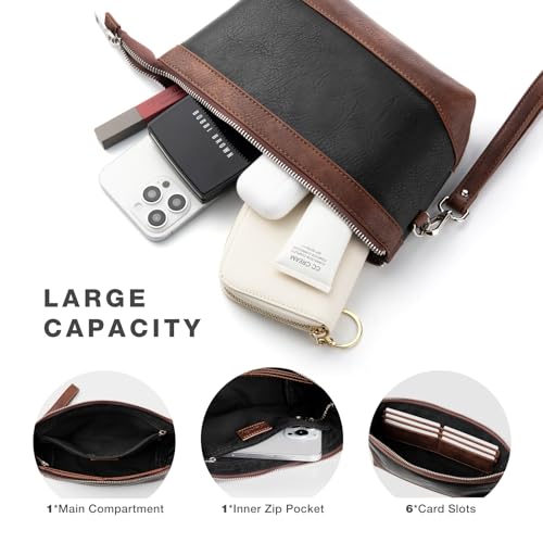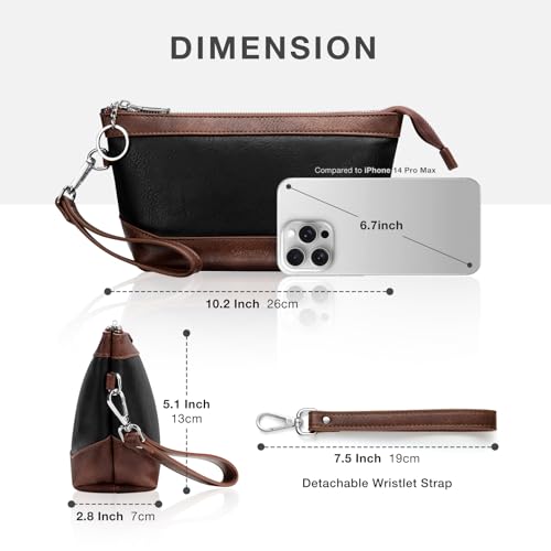 Handgelenkstaschen Damen mit abnehmbarem Armband und Schlüsselanhänger, großes Hauptfach mit inneren 6 Kartenfächern und einer Reißverschlusstasche