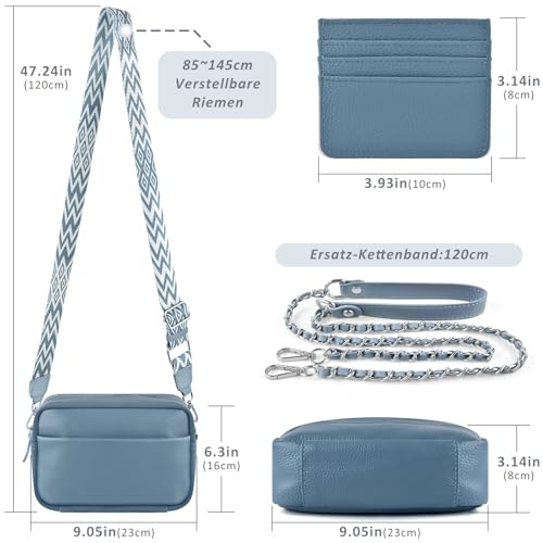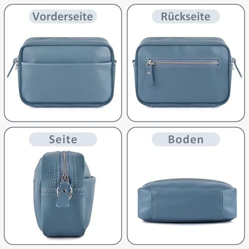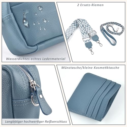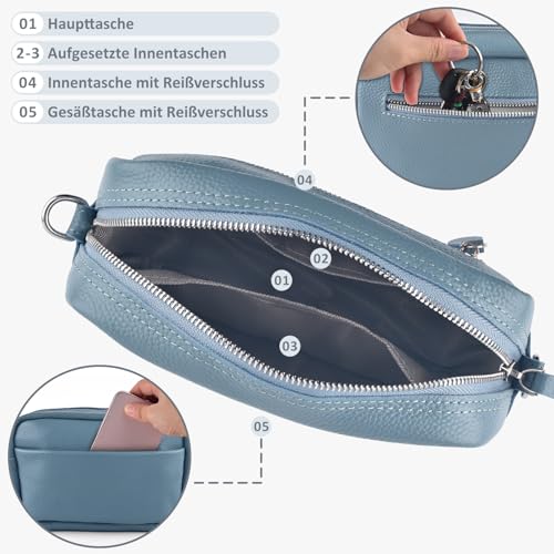 BROTOU Handy Umhängetasche Echtes Leder Crossbody Bag mit 2 Breitem Schultergurt Kartenhalter, Schwarz UmhäNgetasche Damen Leder UmhäNgetasche Damen, Kleine Tasche Damen mit 3 Fächern