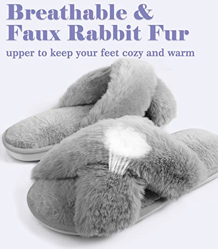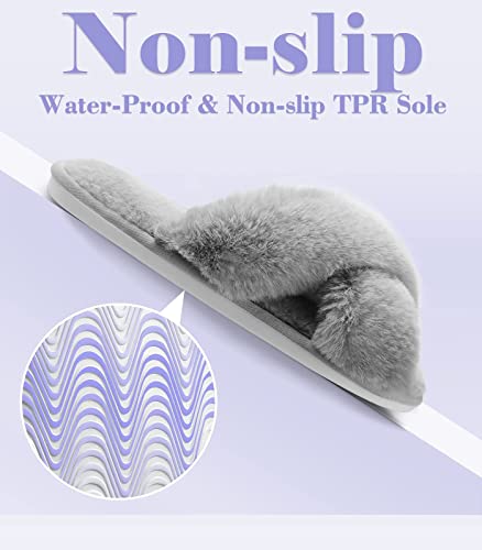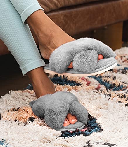 Ankis Hausschuhe Damen Plüsch mit Kreuzband Winter Warme Pantoffeln Memory-Schaum und Offene Zehenpartie Flauschige Hausschuhe Damen für Drinnen und Draußen (Weiß,Schwarz,Grau,Rosa,Kamel)
