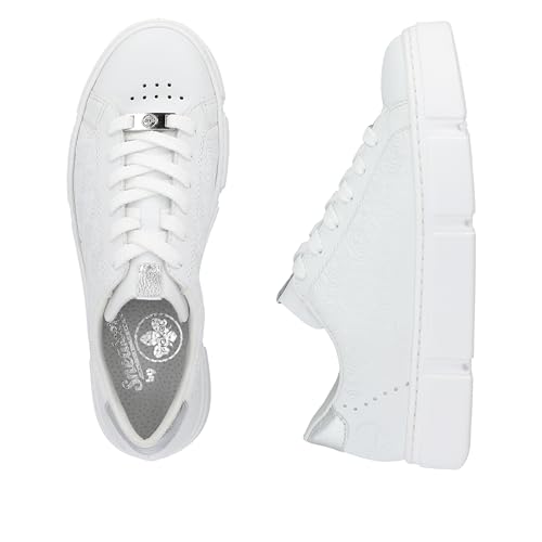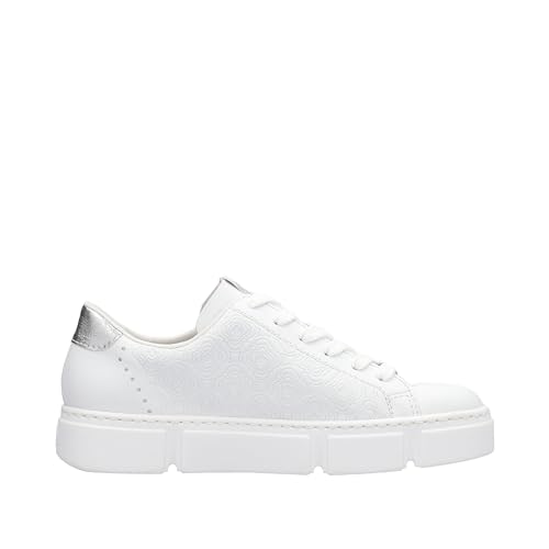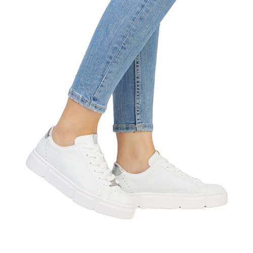 Immer einen Schritt voraus Diese schneeweißen Rieker Sneaker garantieren ein himmlisches Tragegefühl. Durch die Schnürung erhält der Schuh den idealen Sitz am Fuß. Mit der schockabsorbierenden und sehr leichten Sohle werden deine Füße bei jedem Schritt verwöhnt und die extra weiche Decksohle sorgt für mehr Tragekomfort. Worauf warten?.