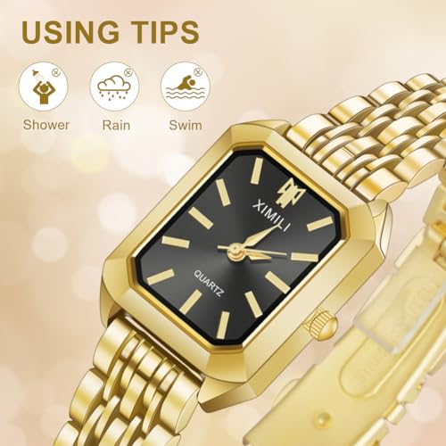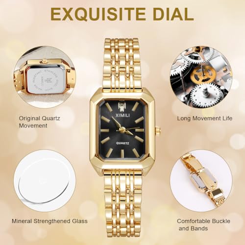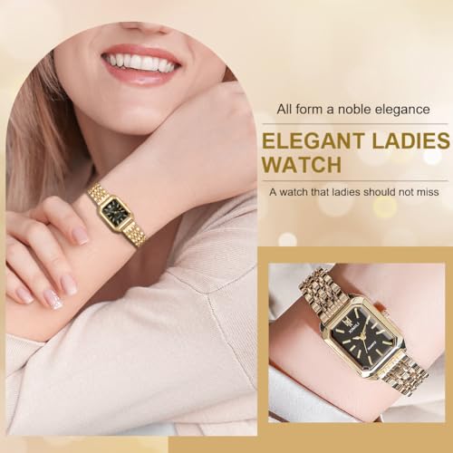 Damenuhr Rechteckige, Damen Analog Quarz Uhr mit Edelstahl Armband, Uhren Damen Klein Einfache Vintage Klassische Armbanduhr Lässig Quarzuhr Kleideruhr, 3 Zeiger