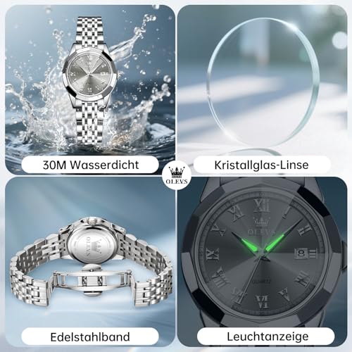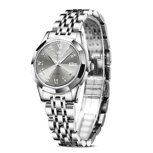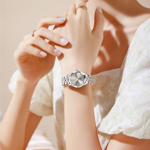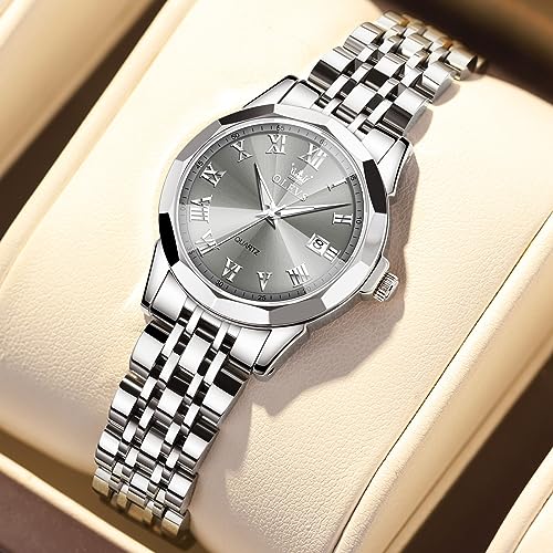 OLEVS Armbanduhr Damen, Kleine Gesicht Edelstahl Damen Kleideruhren, Luxus Diamant Analoger Quarz Watches for Women, Wasserdicht Damenuhr mit Datumsanzeige
