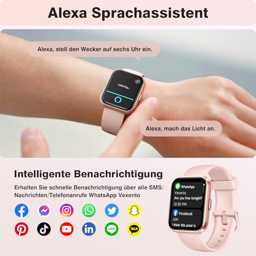 💯【Alexa Sprachassistent & Meldung】 Fitpolo smartwatch mit alexa, du kannst fast alles mit deiner Stimme machen. Egal, ob Sie Ihre Lieblingsmusik spielen, das Wetter überprüfen oder einen Wecker stellen möchten, Alexa ist der Herausforderung gewachsen. Diese schrittzähler uhr damen Unterstützt Nachrichtenbenachrichtigung (Nachricht, Facebook, Twitter, WhatsApp, Instagram, Wechat usw.)