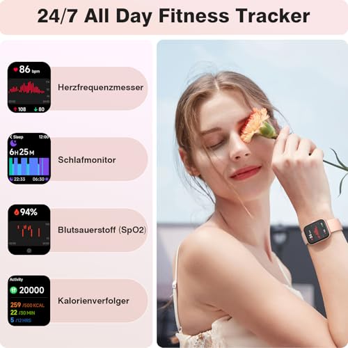 Fitpolo Smartwatch Damen mit Telefonfunktion/Alexa, 1.8″ Smart Watch für iPhone Android Samaung, Fitness Tracker Herzfrequenzr/Schlafmonitor/IP68 Wasserdicht, Fitnessuhr Damen Sportuhr Schrittzähler