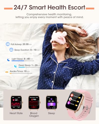 KÜMMERN SIE SICH UM IHRE GESUNDHEIT: Die Armbanduhr Damen ist mit den neuesten Sensoren ausgestattet, um Ihnen genauere Daten zu liefern – 24/7 Herzfrequenz, SpO2, Schlaf und anderen Körperzeichen. Sie hilft Ihnen, Ihre Gesundheit zu verstehen und sie auf mehreren Ebenen zu verwalten. Darüber hinaus ist die Smartwatch Damen mit Atemübungen ausgestattet, die Ihnen helfen, Stress und Ängste durch angeleitete Übungen abzubauen und Ihre körperliche und geistige Gesundheit zu verbessern.