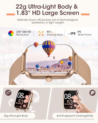 EXTREM LEICHT UND DETAILORIENTIERT: Die erste Smartwatch Damen von RUXINGX im Jahr 2024 verfügt über einen quadratischen Bildschirm und beeindruckende Funktionen. Der 1,83″ HD Bildschirm und das ultraleichte Gehäuse mit nur 22 G sorgen nicht nur für ein klares und lebendiges visuelles Erlebnis, sondern auch für ein angenehmes Tragegefühl. Das einzigartige Doppelrahmendesign mit drei verschiedenen Uhrenarmbändern optimiert das Erscheinungsbild zusätzlich und macht die Uhr elegant und praktisch.