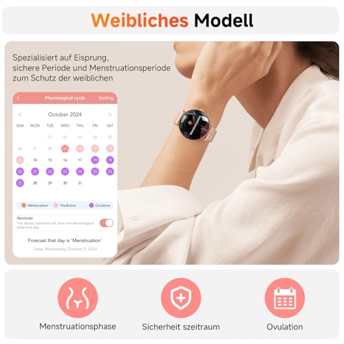 ❤【Ganztägige Gesundheitsüberwachung Smartwatch】 — Schrittzähler-Uhr für Frauen ermöglicht eine 24-stündige Überwachung von Herzfrequenz und Schlafstatus (Tief-/Leichtschlaf). Die speziell für Frauen entwickelte Menstruationstracking-Funktion kann Frauen dabei helfen, die bevorstehende Menstruation und den Eisprung besser vorherzusagen oder sich daran zu erinnern, und bietet somit mehr Komfort für die weibliche Gruppe. Es ist eine gute Wahl als Geschenk für damen