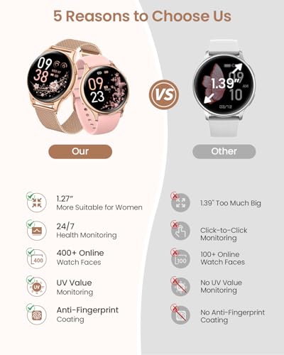 Smartwatch Damen mit Telefonfunktion, Rund 1,27″ HD Screen Armbanduhr mit 120+ Sport Pulsuhr SpO2 Schlafmonitor Menstruationszyklus IP68 Fitness Tracker Schrittzähler für iOS Android Roségold