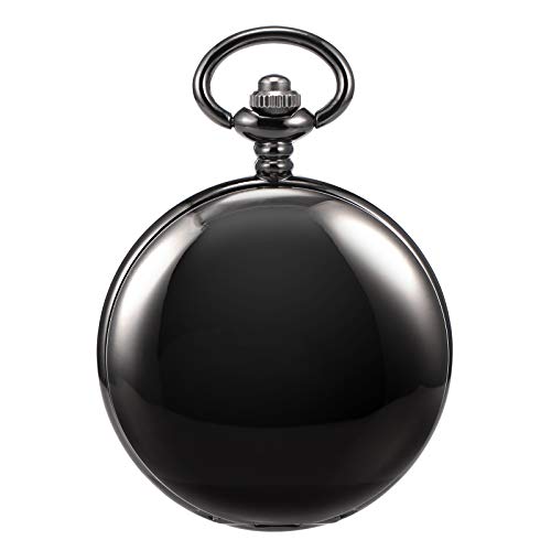 Herren Antik Drache Mechanische Skelett Taschenuhr Schwarz Bronze Doppelgehäuse mit Kette